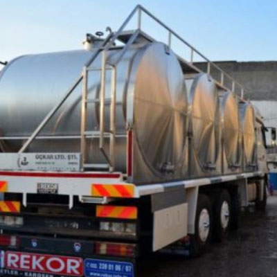 des camions et camionnettes avec réservoirs de châssis sont utilisés pour transférer les produits( Lait, lactosérum, etc.) des centres de collecte aux usines ou pour les collecter dans les villages, les mandiras, etc. İl est généralement isolé pour la protection de la chaîne du froid. Outre les productions standard, la production peut également être faite en fonction du tonnage et des caractéristiques demandées.Les véhicules peuvent être envoyés sans châssis, aussi bien que des montage peut être faites sur les véhicules à caisse .l’emplacement des réservoirs, de la ligne de CIP, du collecteur de décharge de produit et de la plate-forme de marche sont sont en montages. Après le dessin de projet et l’approbation de la TSE, le véhicule est prêt pour le visa. la production de réservoirs est également en cours pour les camions et vehicules quatre coins, coins ovales (faciles à nettoyer).Une unité arrière de collecte de lait numérique ou manuelle est également en cours d’installation sur demande.